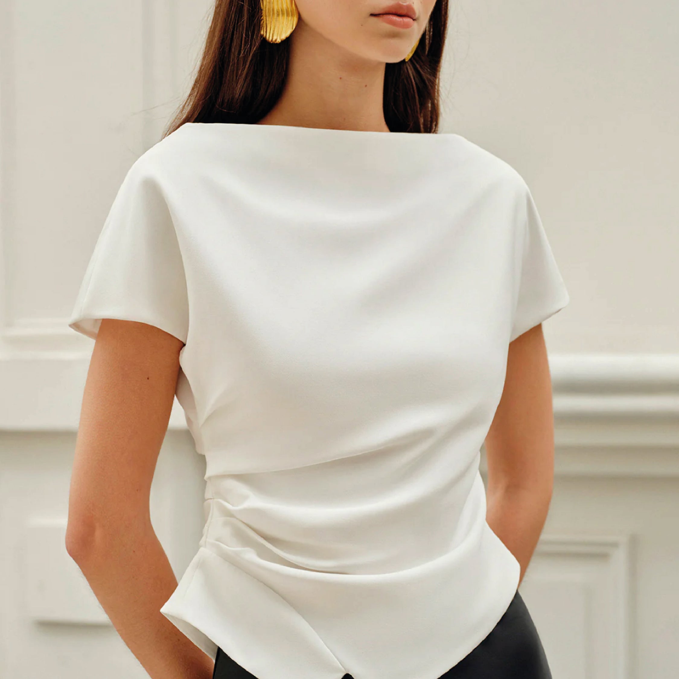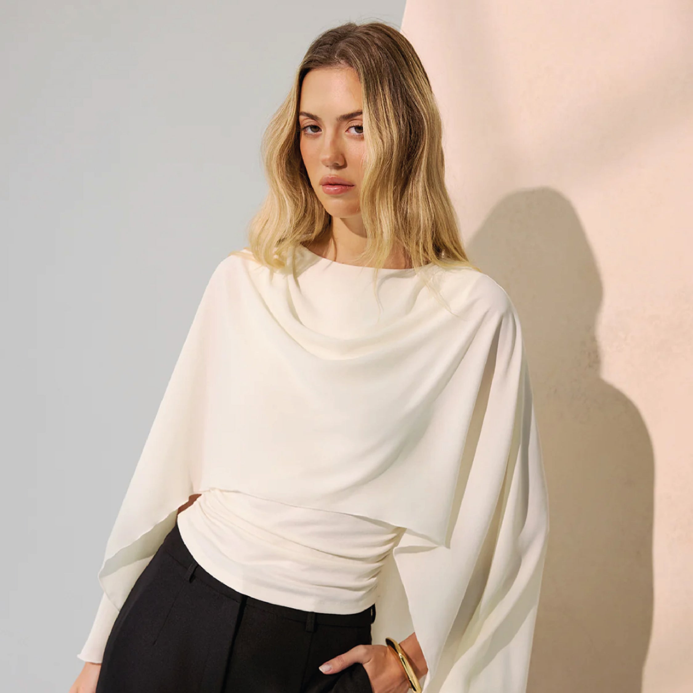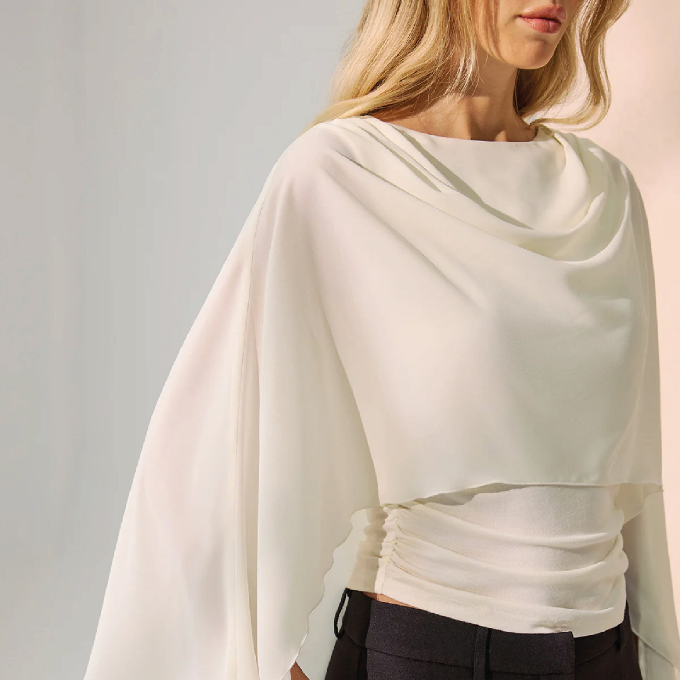 Ivory Draped Cape-Sleeve Top