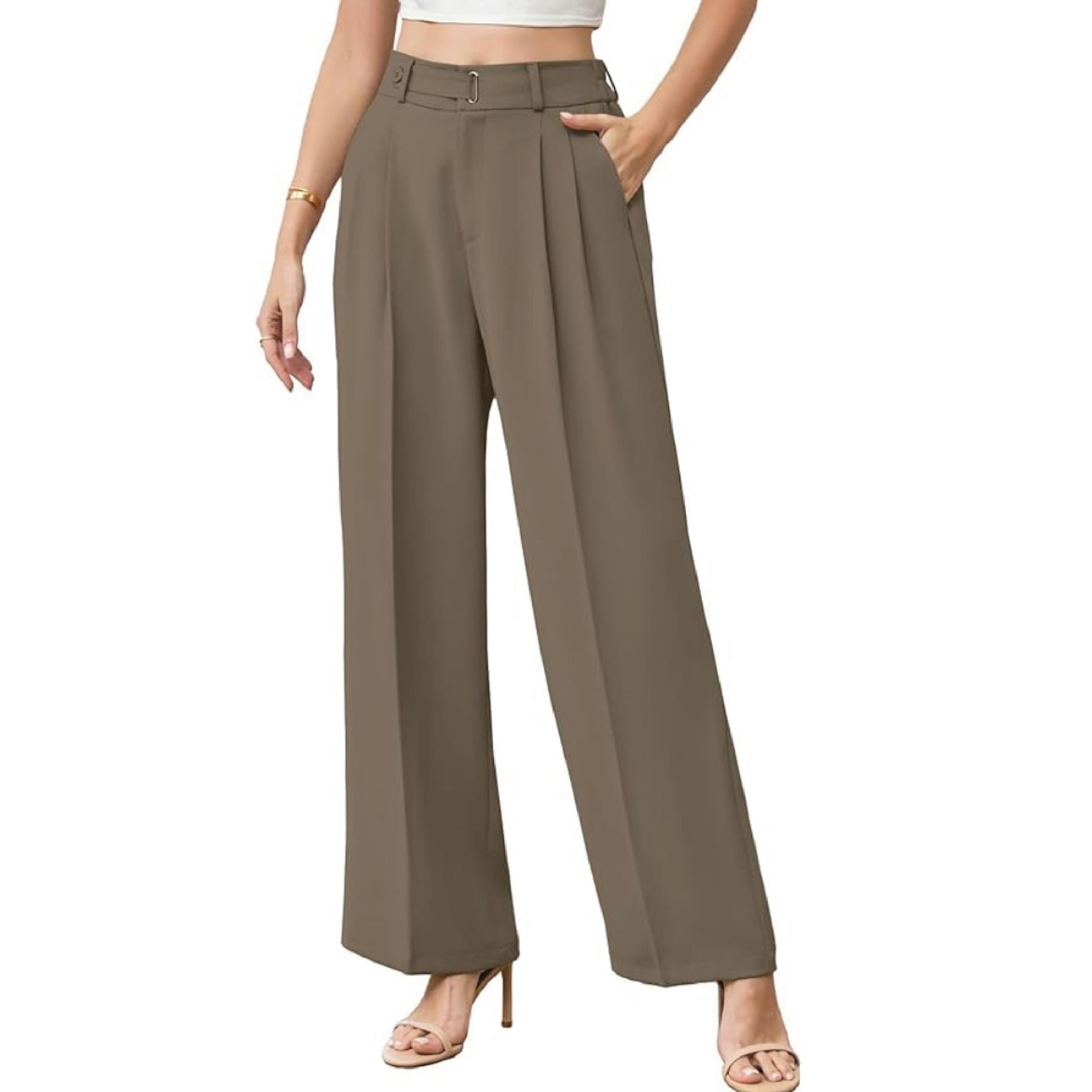 High-Waisted Dress Pants - Taupe